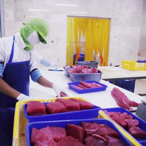 PT. Awindo International possesses state-of-the-art manufacturing facilities to ensure good quality of the products and meet customers' requirements. PT. Awindo International premises host an office building, one processing plant, and three cold storages with a capacity of about 375 MT at -25oC. Our plant is equipped with band-saw machines, 3 airblast quick freezers, CO room, a chiller room, a canteen and a workers' restroom. PT. Awindo International is able to process about 50MT of raw materials, yielding an approximate 20MT of semi-products each day